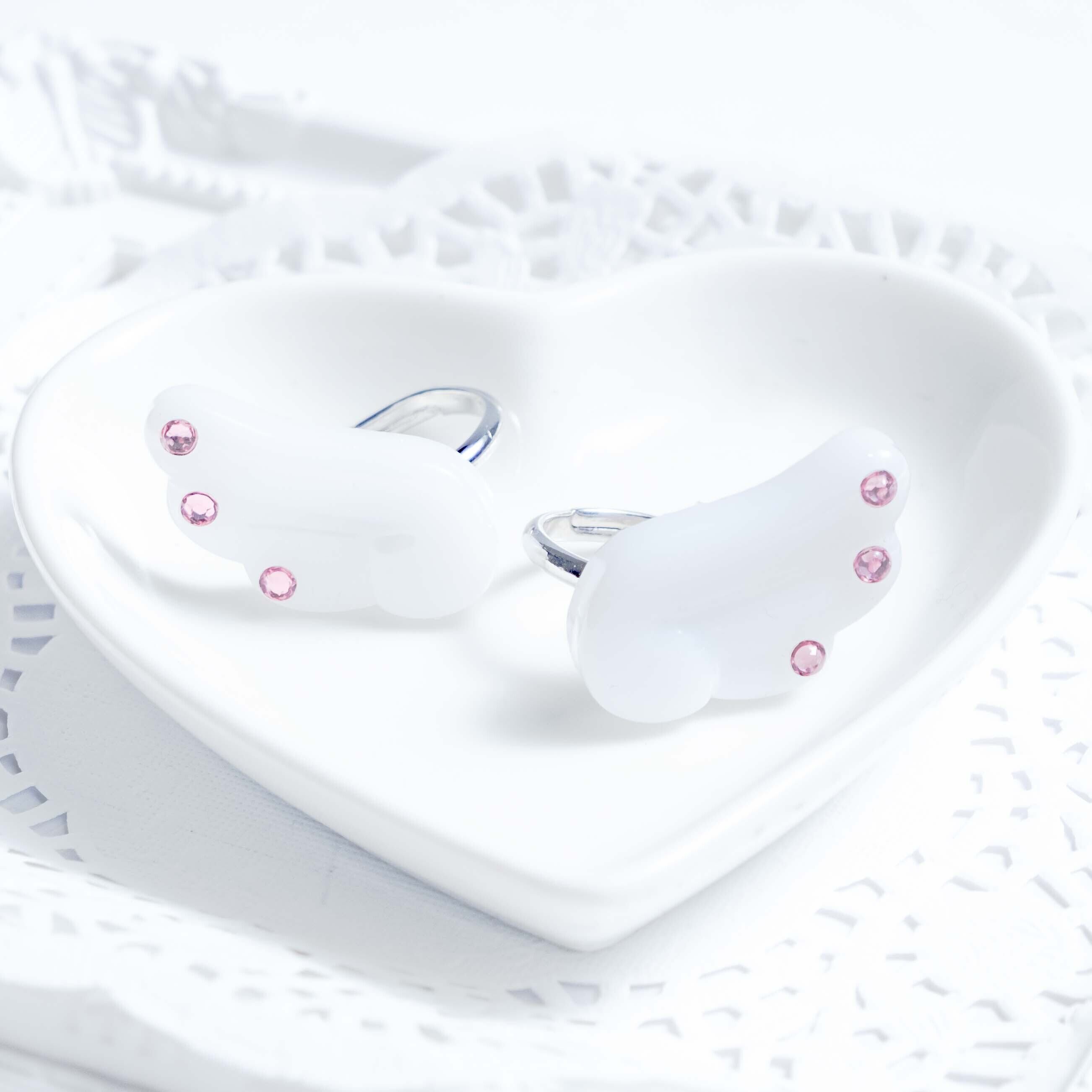 しんぷるなデザインのえんじぇるりんぐ .。 左右セットでの販売です! もちーふさいず : 縦 約20mm * 横 約30mm りんぐさいず : 11号(フリー)