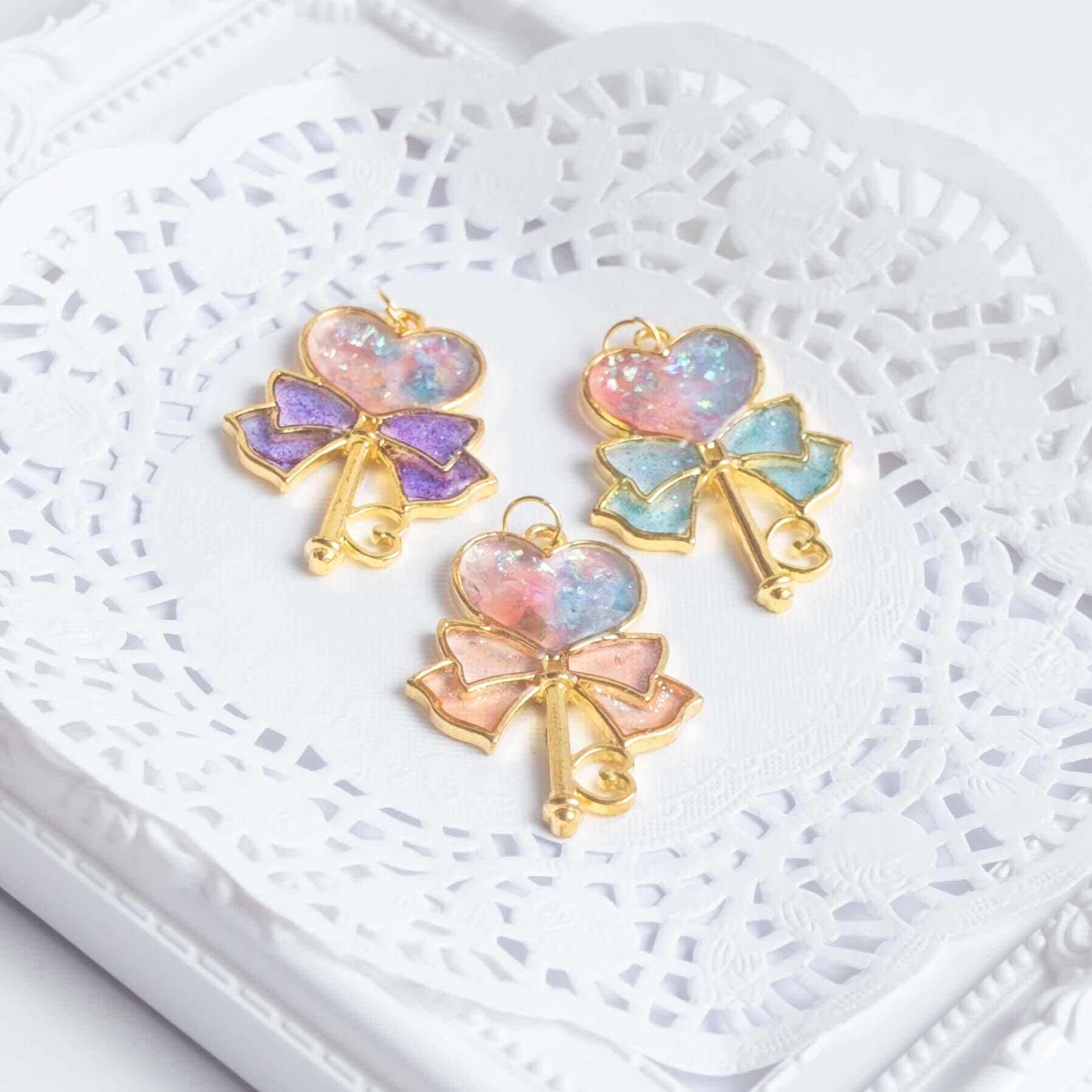 アシメカラーのハートが可愛いきらきらキーチャーム *。